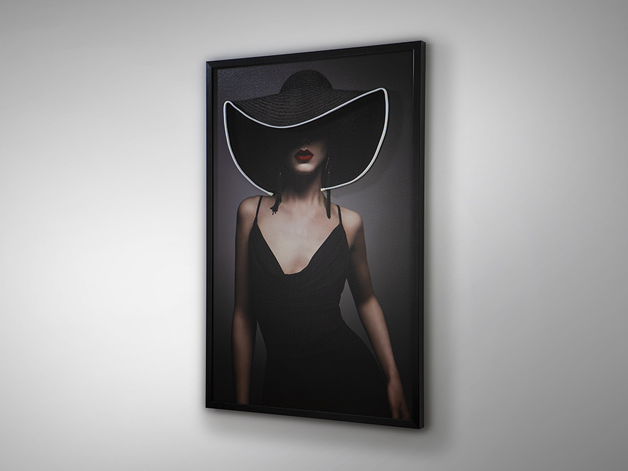 Preciosa Mujer con pamela, composición con tira de luz led decorativa.